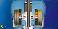 getrennten, schüsselartigen Gesäß- und Rückenteilen, die an den