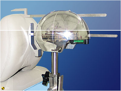 Il dispositivo attacca alla nostra macchina punto-H S.A.E. tridimensionale e offre le misure del 50º percentile di un adulto maschile per l'altezza e la posizione della poggiatesta.